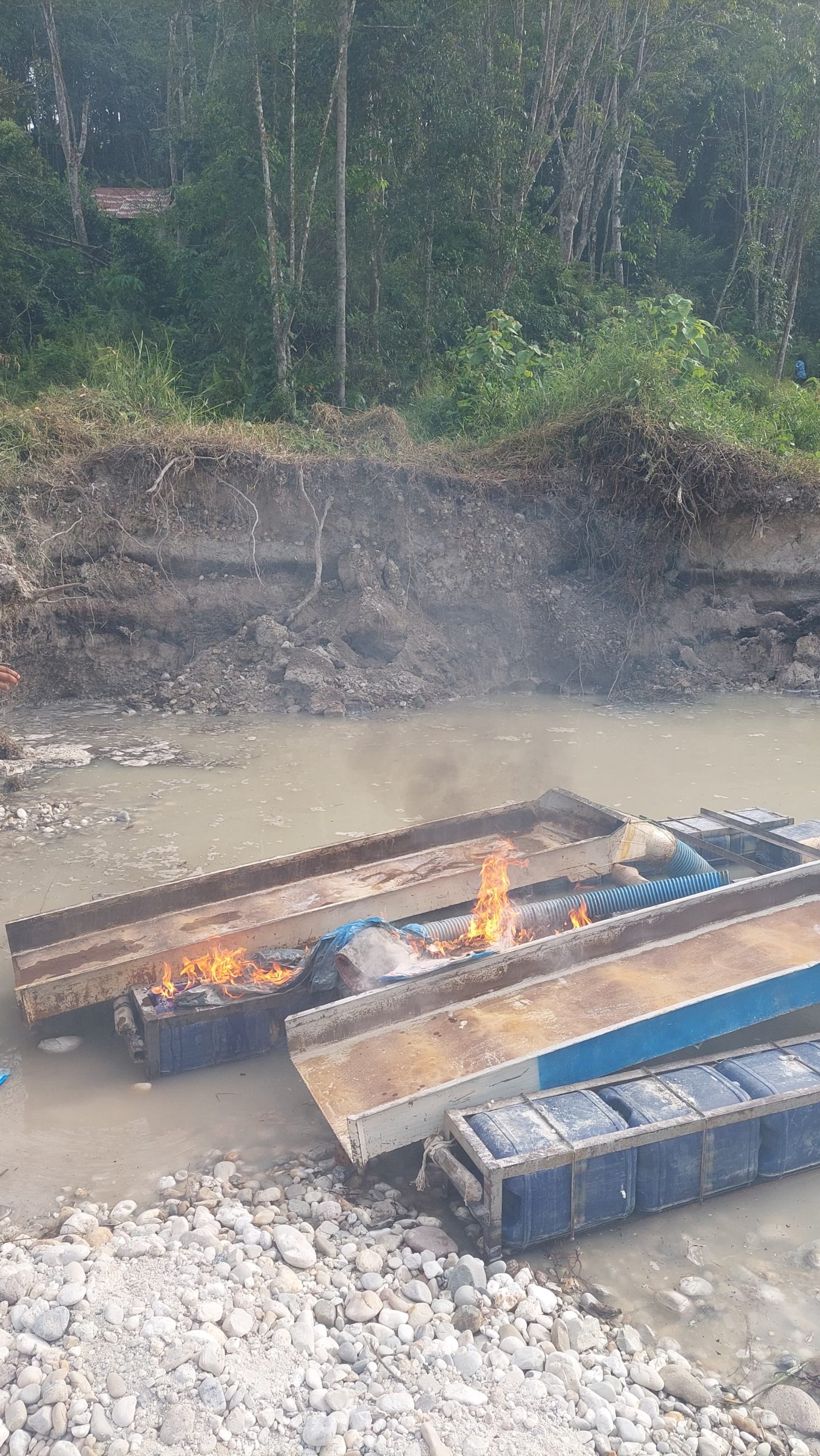 “iya kami dari Dinas Perkebunan sengaja turun ke lokasi kebun Pemda yang berada di Desa Jake Kecamatan Kuantan Tengah, untuk melakukan kegiatan penertiban Dugaan aktivitas PETI di kebun Pemda, saat di lokasi memang kita jumpai adanya beberapa unit mesin Robin, sesuai perintah Kepala Dinas sebelumnya mendapatkan laporan dari berbagai sumber bahwa adanya informasi beraktifitas di kebun tersebut dan kami dari dinas sudah melakukan penindakan dengan membakar mesin dan alat dari mesin Robin tersebut, “terangnya.