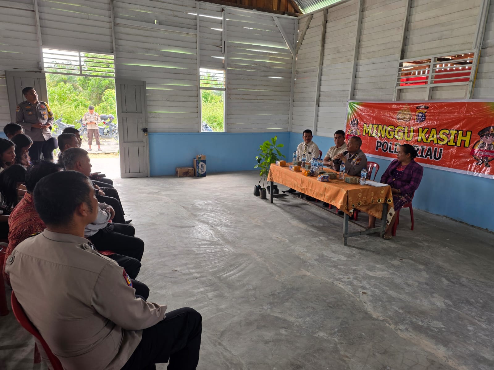 Kegiatan yang dimulai sekira pukul 09.00 WIB ini dihadiri oleh Kabag Pasilat Bhabinkamtibmas Ditbinmas Polda Riau Kompol Sudiyanto, Kanit Intel Polsek Rumbai IPDA Sofyanus, serta sejumlah Bhabinkamtibmas Polsek Rumbai, dan diikuti oleh sekitar 30 orang jemaat Gereja Kristen Lutheran Indonesia.
