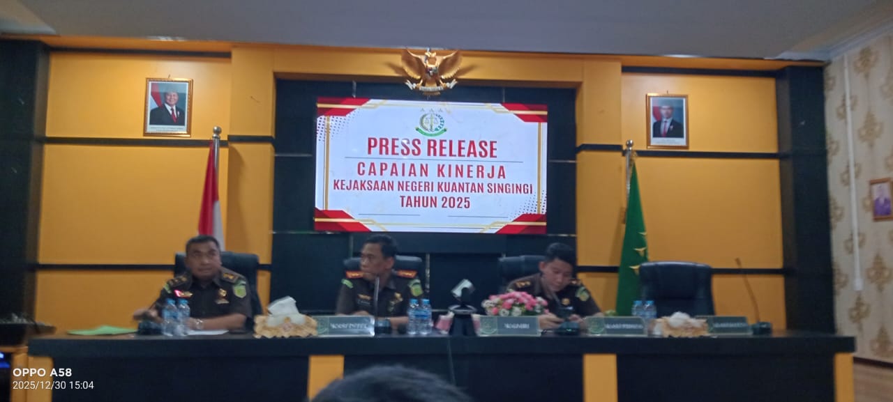 “Sepanjang tahun 2025, Kejaksaan Negeri Kuantan Singingi tidak hanya fokus pada penegakan hukum, tetapi juga mengedepankan pemulihan dan penyelamatan keuangan negara. Total pemulihan dan penyelamatan keuangan negara yang berhasil kami lakukan mencapai Rp54,72 miliar, di samping peningkatan PNBP yang melampaui target,” ujar Sunardi Ependi, Selasa (30/12).