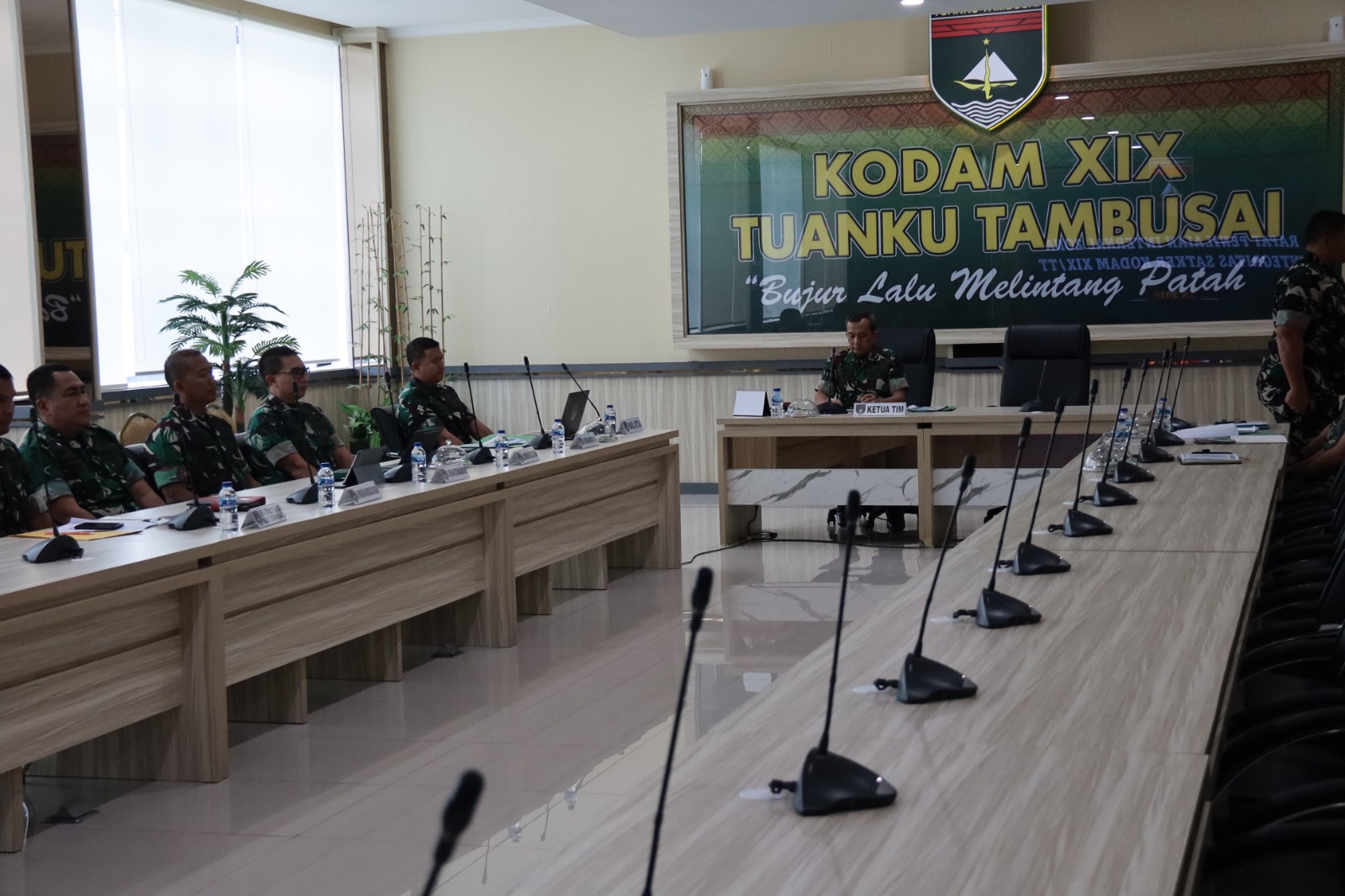 Rakor dipimpin Inspektur Kodam (Irdam) XIX/TT Brigjen TNI Totok Sutriono, S.Sos., selaku Ketua Tim Penilai Internal.