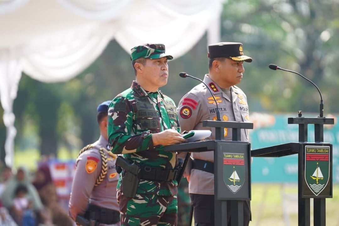 KUANTAN SINGINGI || ForumAspirasi.id – Panglima Komando Daerah Militer (Pangdam) XIX/Tuanku Tambusai Mayjen TNI Dr. Agus Hadi Waluyo, S.A.P., M.M., CHRMP., bersama Kapolda Riau Irjen Pol. Dr. Herry Heryawan, S.I.K., M.H., M.Hum., secara resmi menutup kegiatan TNI Manunggal Membangun Desa (TMMD) Ke-127 Tahun Anggaran 2026 Kodim 0302/Inhu dalam upacara yang digelar di Lapangan Sepak Bola Desa Tanjung, Kecamatan Kuantan Hilir Seberang, Kabupaten Kuantan Singingi, Rabu (11/3/2026).