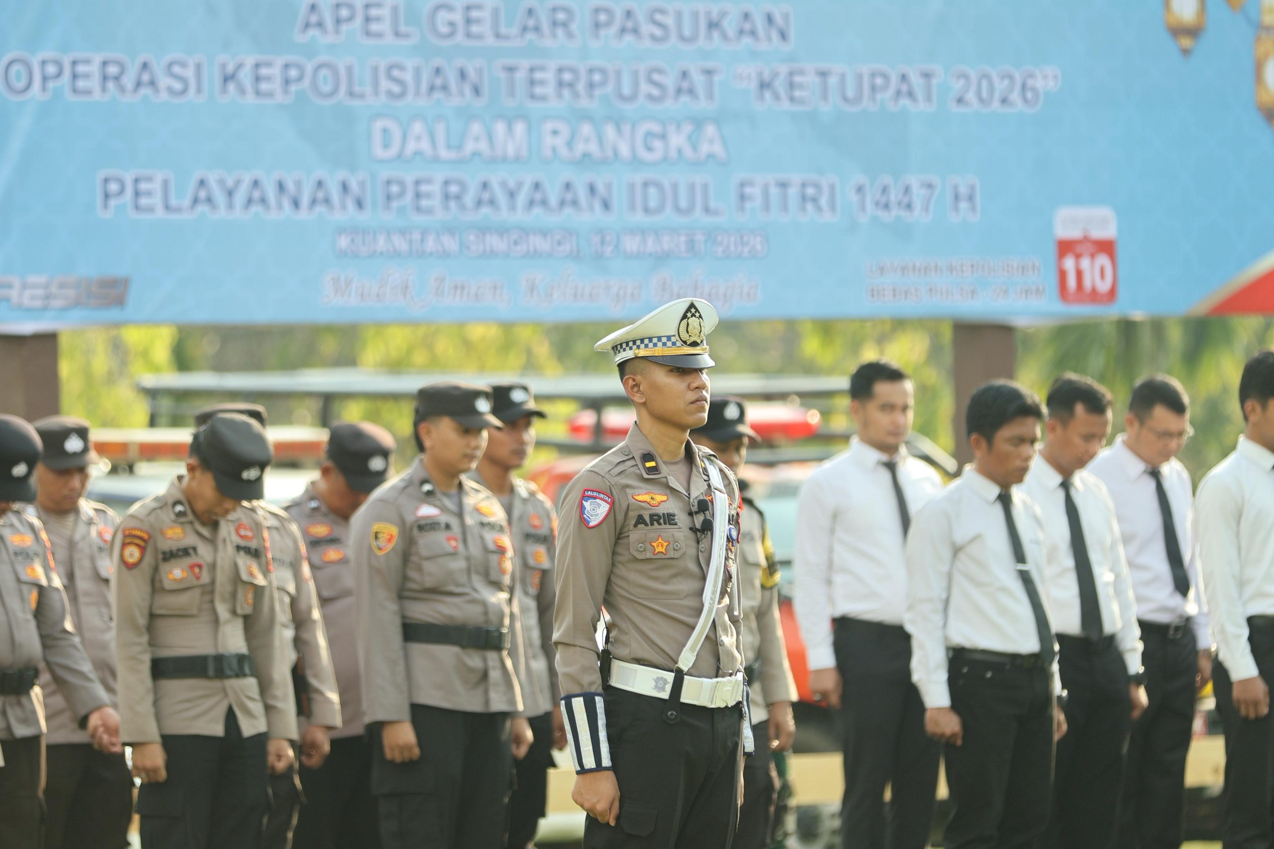 Apel tersebut diikuti oleh personel gabungan dari TNI, Polri, Dinas Perhubungan, Satpol PP, BPBD, serta sejumlah instansi terkait lainnya. Kegiatan ini menjadi bentuk kesiapan dalam pengamanan menjelang arus mudik dan perayaan Idul Fitri di wilayah Kabupaten Kuantan Singingi.